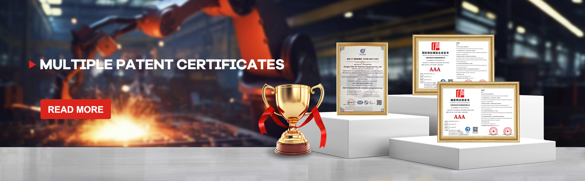 Jiangyin Yihe Air Equipment Treatment As a leading enterprise in the rotary dehumidifier industry,we have obtained ISO9001:2015 and ISO14001:2015 certifications and are committed to providing efficient and reliable air treatment solutions.